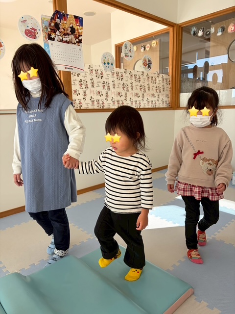 長く繋げバスに見立てると、みんなでバスごっこが始まり