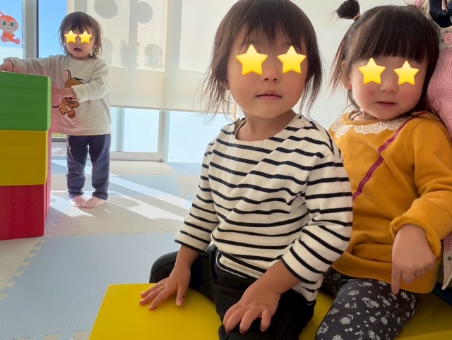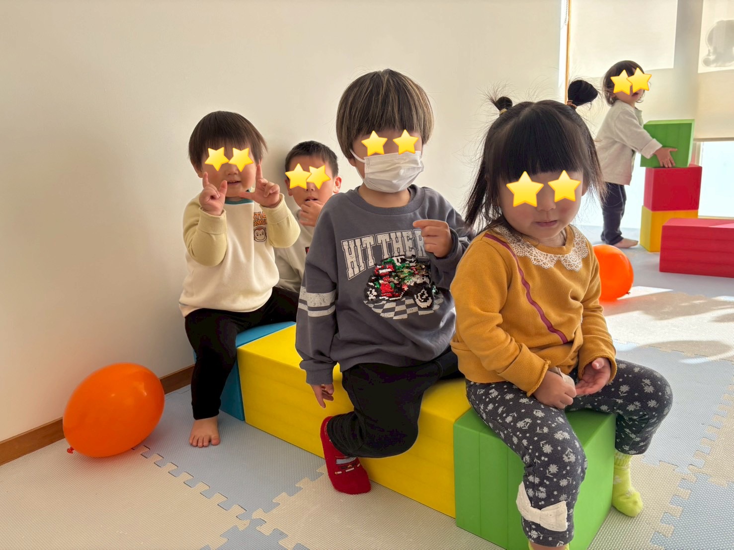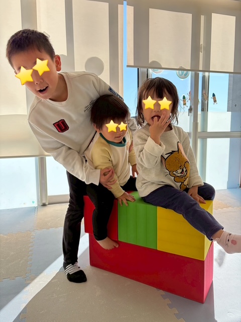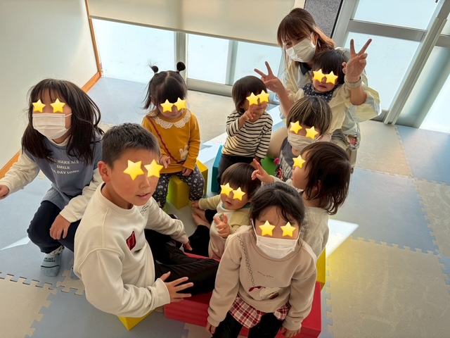最後はみんなで協力して積み木を四角に繋げ、温泉を作り『入るよ〜☺︎』と全員揃ってパシャリ♡