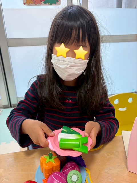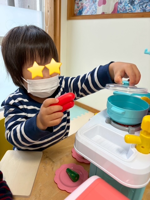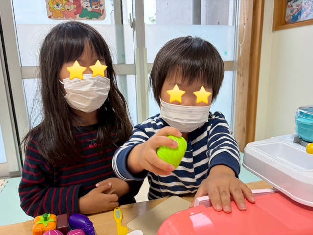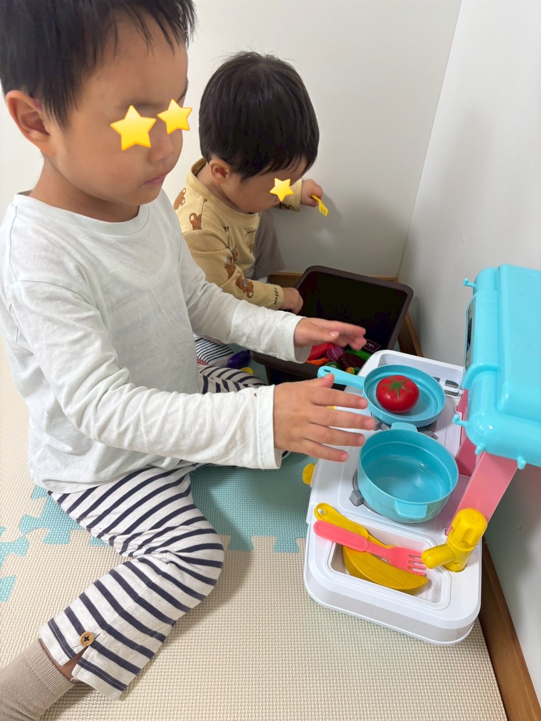 3歳と5歳の姉弟のお子さん達は、入室後仲良くおままごとで遊びました★