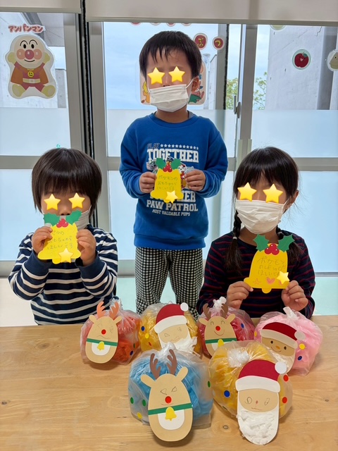 クリスマス製作では、みんなでサンタさんへのお願い事を書いたり