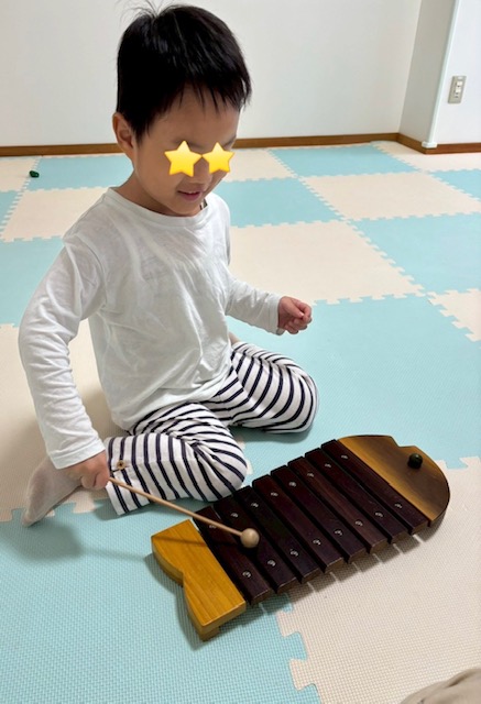 木琴を渡すと大喜びで、先生と一緒に❝キラキラ星❞を弾きました♫