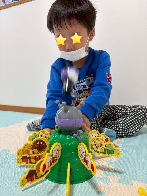 次々に剣をさしていき、バイキンマンが飛び跳ねると『うわぁ~☻』と大はしゃぎでとても楽しそうでした♫