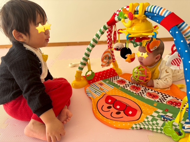 2歳の男の子は、小さなお友達に興味津々です♡
