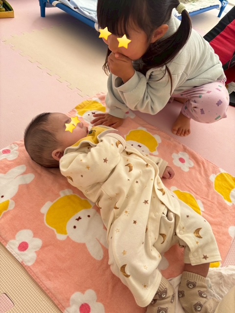 4歳の女の子も、赤ちゃんと一緒なのが嬉しいようで