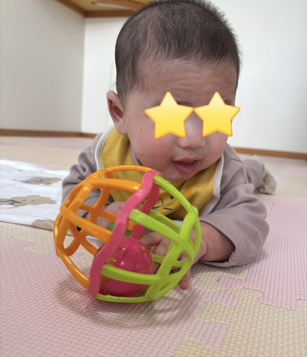 ジムメリーに手を伸ばして遊んだり、上手に寝返りをして