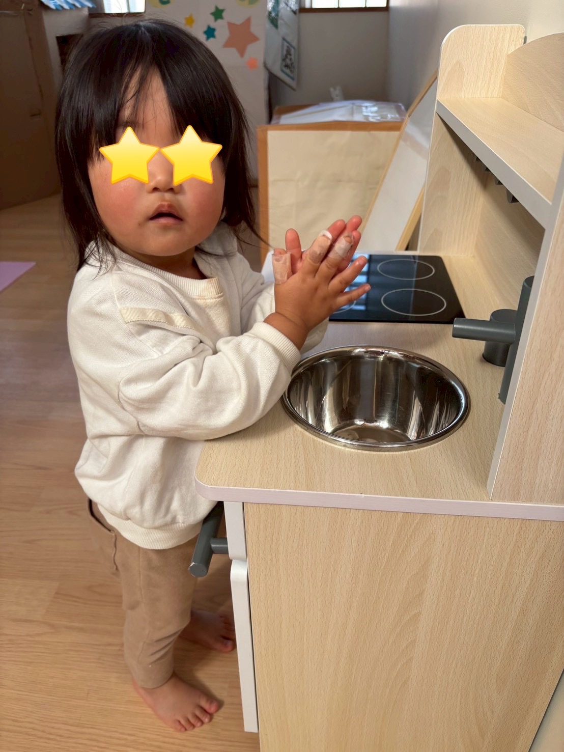 おままごとのキッチンを見つけると、嬉しそうに度々水道で手洗いをする真似をしていて
