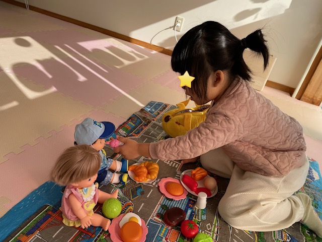 メルちゃんやあおくん人形に食べさせてあげたり・・・と、小さなお母さんのようでした☆
