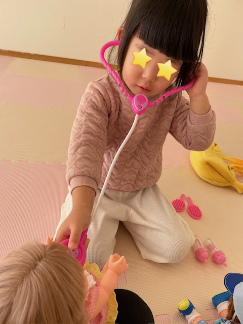 『病院ごっこしよう!!!』と、聴診器を当てながら