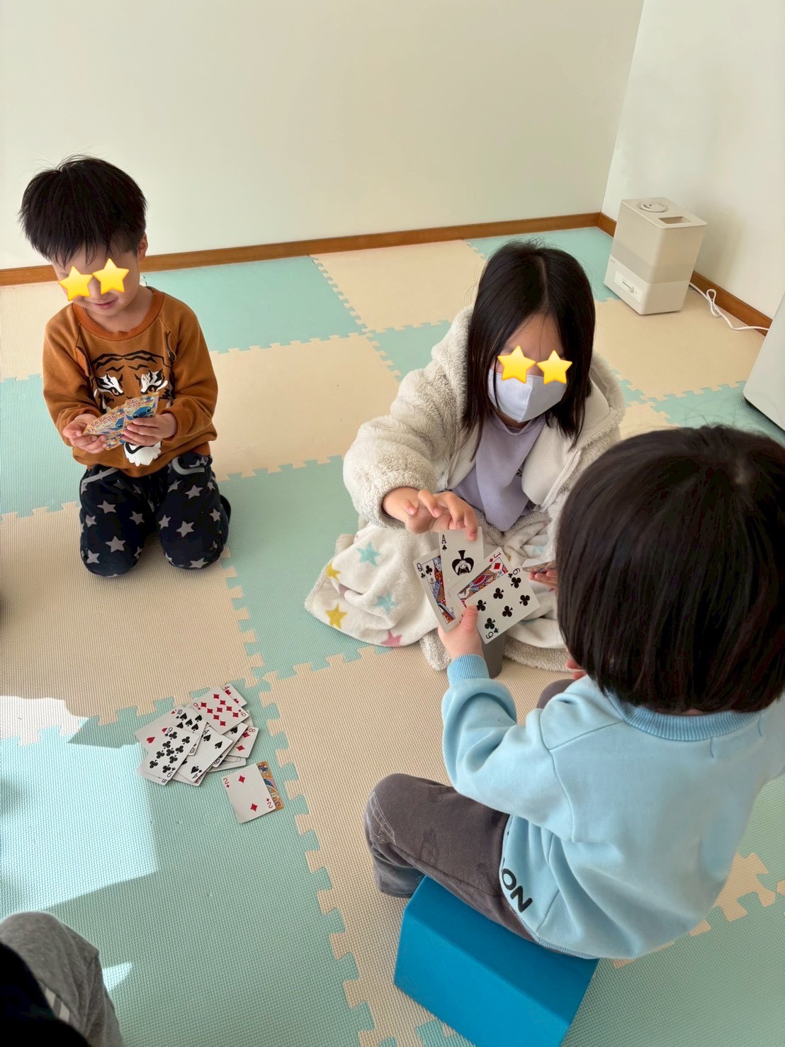 体を動かして遊んだ後は、トランプで神経衰弱やババ抜きをして遊びました♡