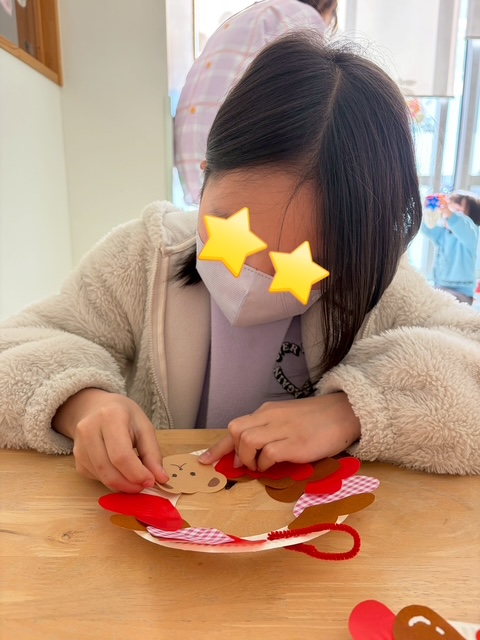 ハートを貼る位置やクマの顔も、大きさやバランスを見ながら丁寧に作っていき