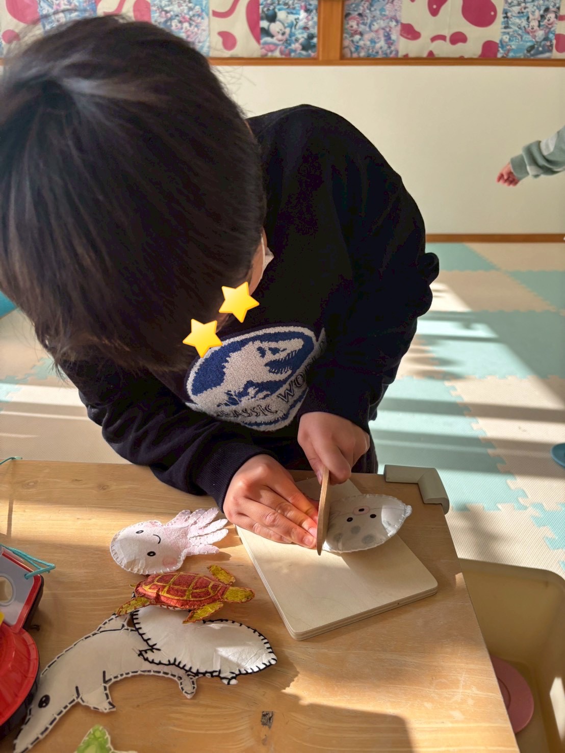 自分の好きなシールを貼り、飛ばして遊びました☺︎
