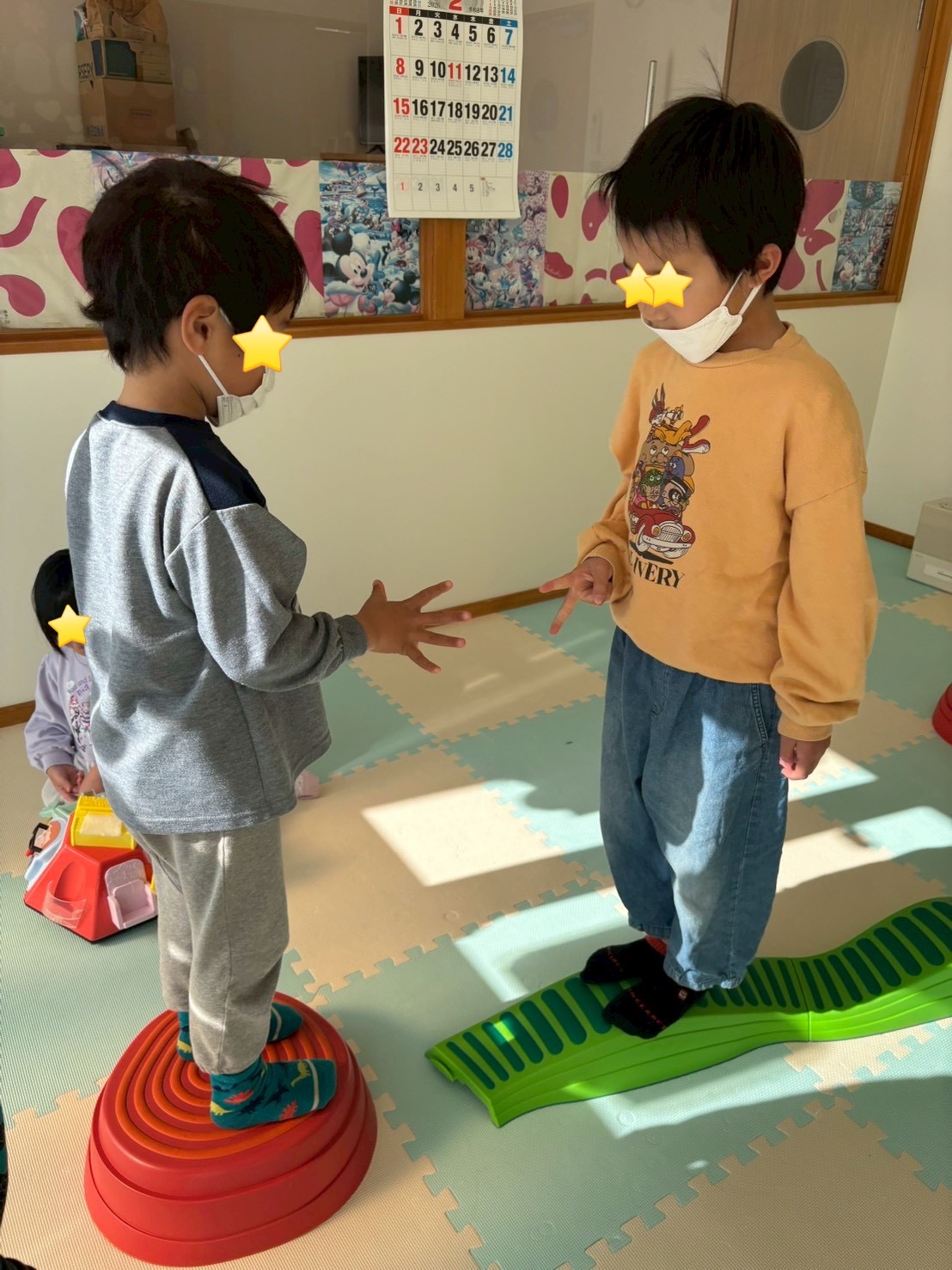 ストーンの上をジャンプしたり・歩いたり・・・と、身体を動かして遊びました★