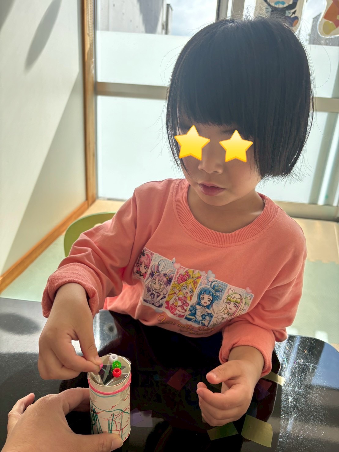 出来上がった万華鏡を覗いてみると『わぁ〜!きれい♡』と大喜びでした☺︎