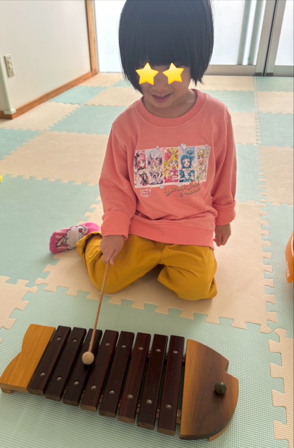 綺麗な音色に興味津々で、優しく叩いていましたよ☺︎