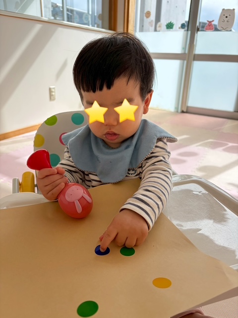 男の子もじっと見つめながら、一生懸命ペタッ!!!