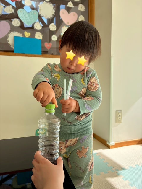 ペットボトルのストロー落としでは、小さな穴にストローをポトン!!!