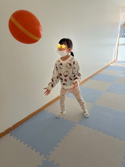風船ボールを用意すると、それぞれ投げたり蹴ったりと