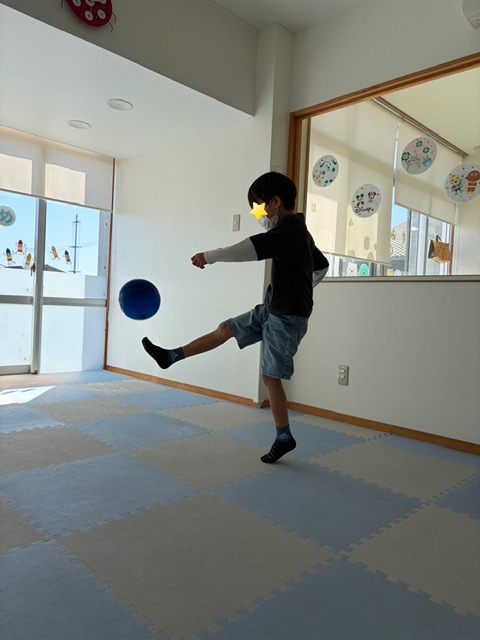 サッカーが得意という事で、ボールを投げたり蹴ったりと
