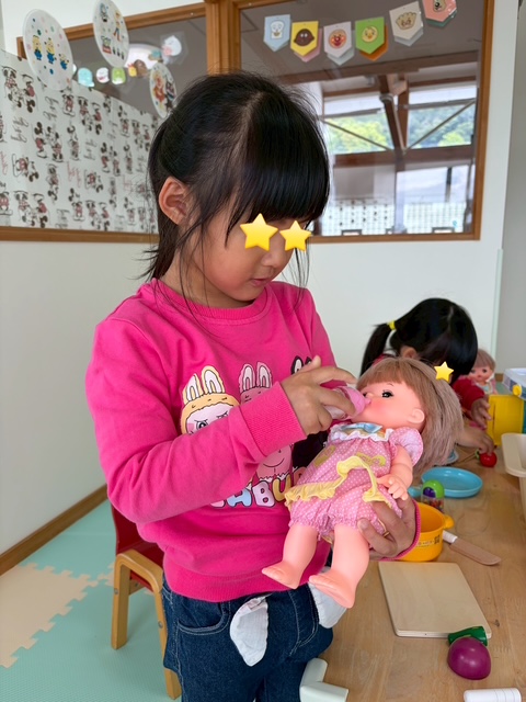 3歳の女の子は『メルちゃんにミルクあげるの!』と、お母さんになりきってミルクを飲ませてあげたり