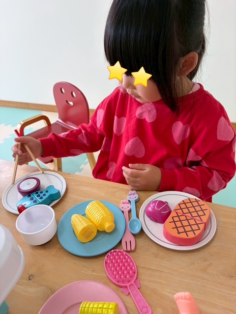 4歳の女の子も仲間入りすると、大好きなおままごとに夢中です♡