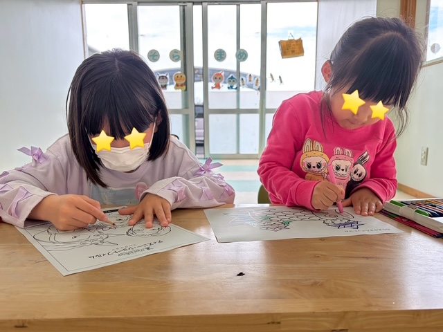 3歳の女の子も仲間入りして、仲良くぬりえも楽しみました★