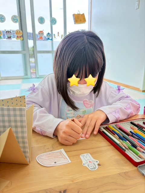 絵本の形に折ったり絵を描いたり・・・と、丁寧に取り組み