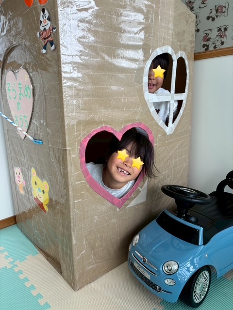 段ボールハウスをお部屋に入れると『ここは私のお家!』と、ごっこ遊びを楽しんでいました♫