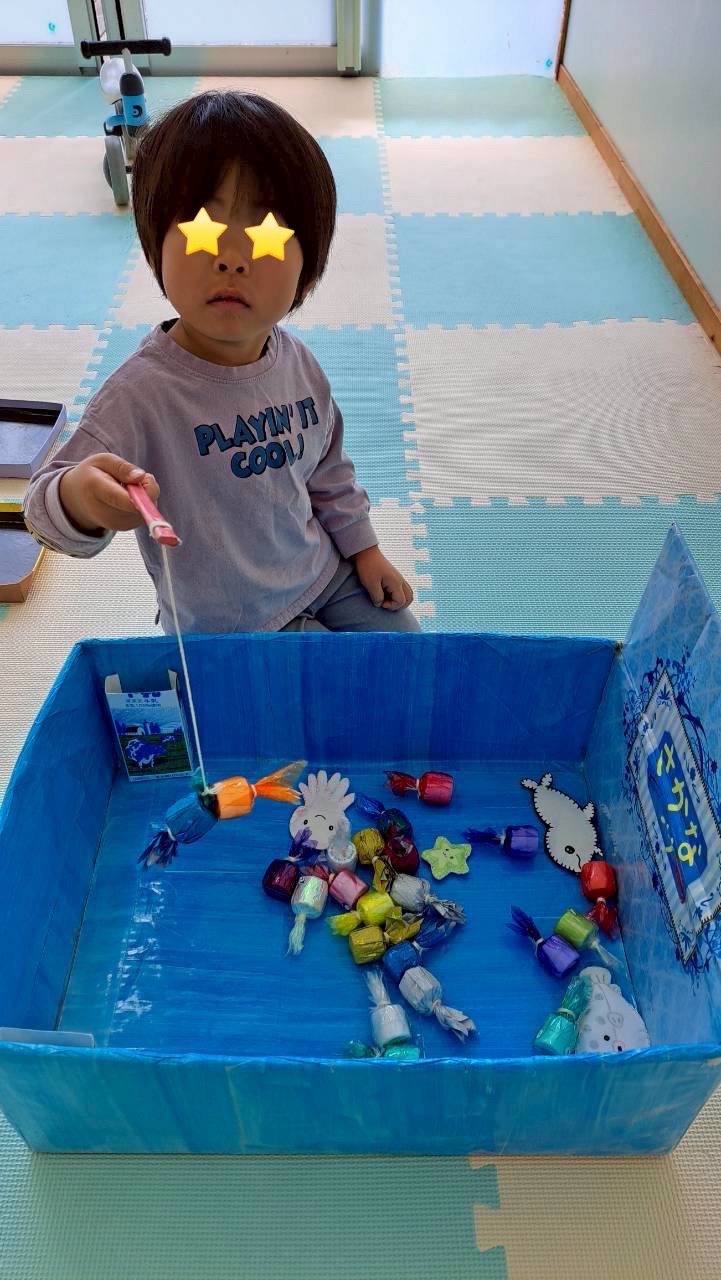 魚釣りでは『あ!2個釣れたじゃん!』と、同時に連れて驚く男の子★
