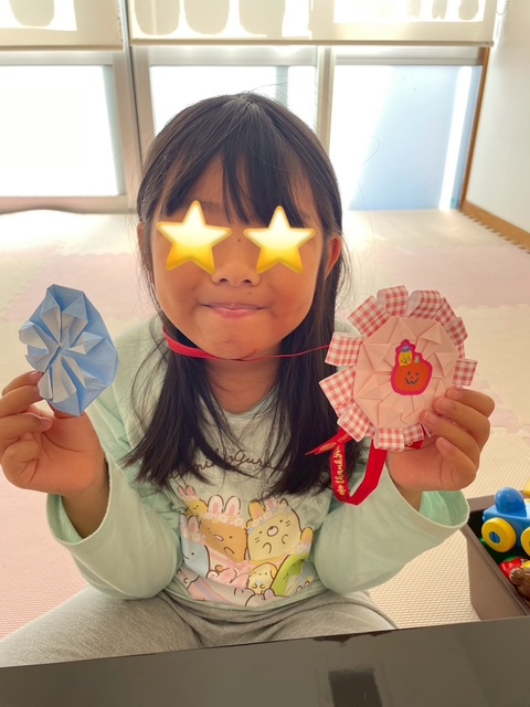 『メダルを作りたい★』とのことで、折り紙を使ってメダルを作りました❢