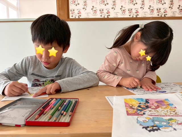 ぬりえでは、それぞれ好きな絵を選び塗り始めました☆
