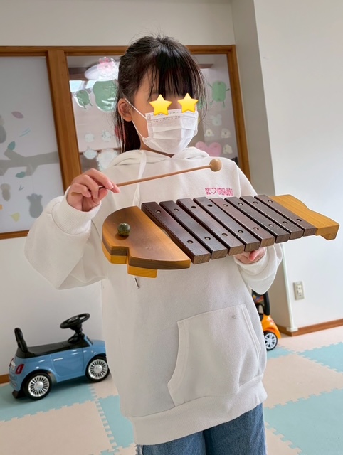 伸び縮みする音が楽しかったようで、夢中で遊んでいましたよ❢