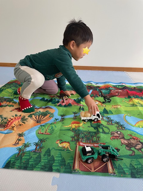 4歳の男の子、入室後は大好きな恐竜やトミカで遊びました♡