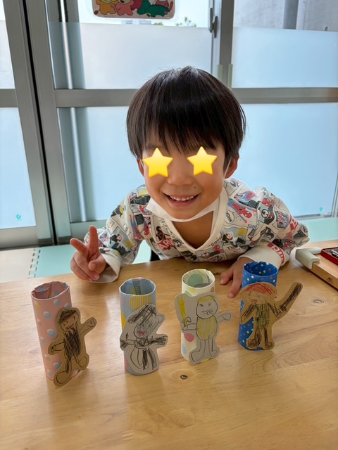 鬼滅の刃のキャラクターを、画用紙やペーパー芯で丁寧に作りました♪