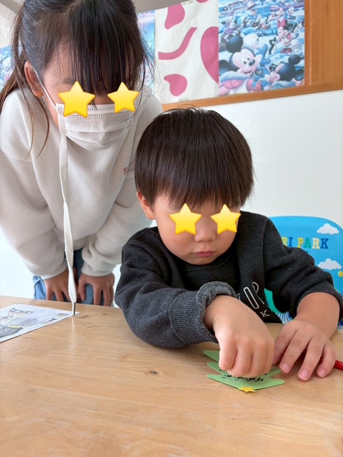 可愛い雪だるまの顔を描いた後、先生に欲しい物をそっと教えてくれましたよ☺︎