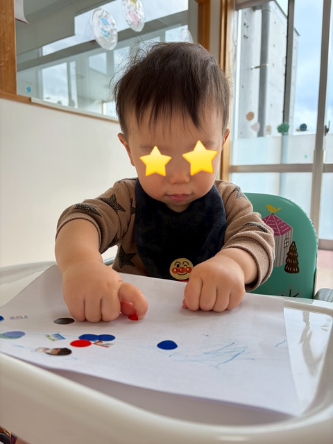色を替えながら、紙いっぱいにお絵描きやシール貼りを楽しんでいました♡