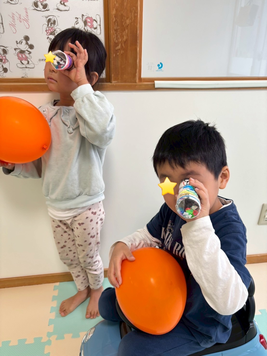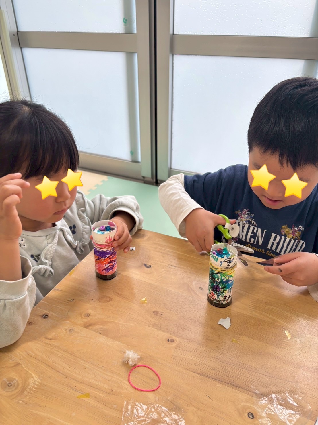 4歳の男の子と女の子は、仲良く万華鏡作りを楽しみました☆
