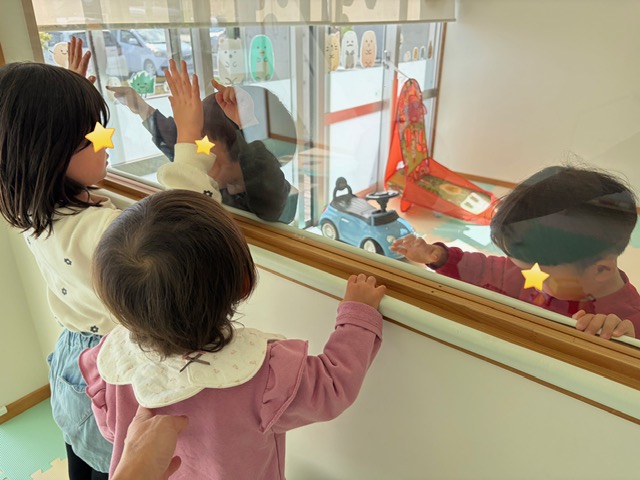 別のお部屋で過ごしながらも、やっぱりお隣の部屋のお友達も気になる様子☺︎