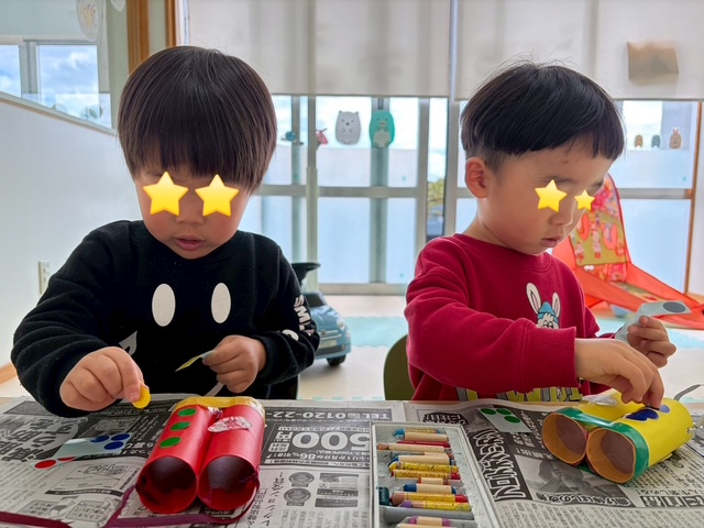 トイレットペーパーの芯を使って、双眼鏡を作りました!