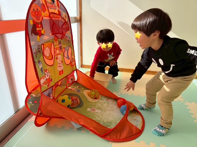上手に穴に入れられると大喜びで、繰り返し楽しんでいました♡