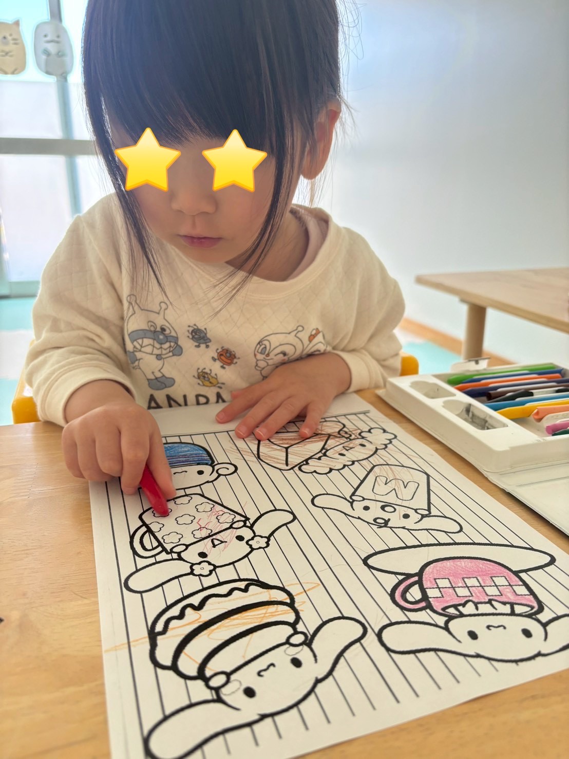 ぬりえもシナモンロールを選び、丁寧に塗っていましたよ♫