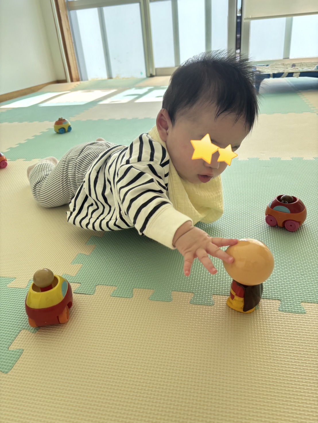 動きも活発で、欲しい玩具めがけてズリズリとずり這い・・・❢