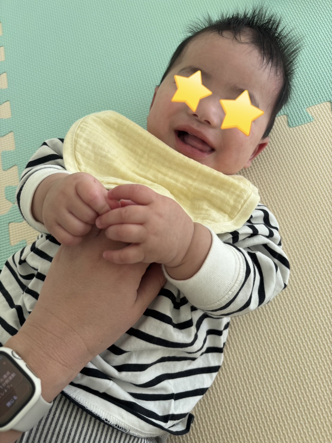 ❝一本橋こちょこちょ❞とお歌を唄うと、じ~っと見つめて最後のこちょこちょを待っている男の子☆