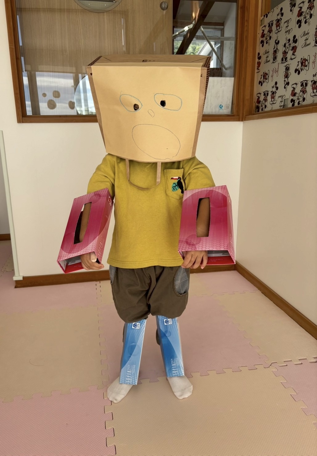 廃材で何か作ろうか…と相談して、ロボットを作ることに★