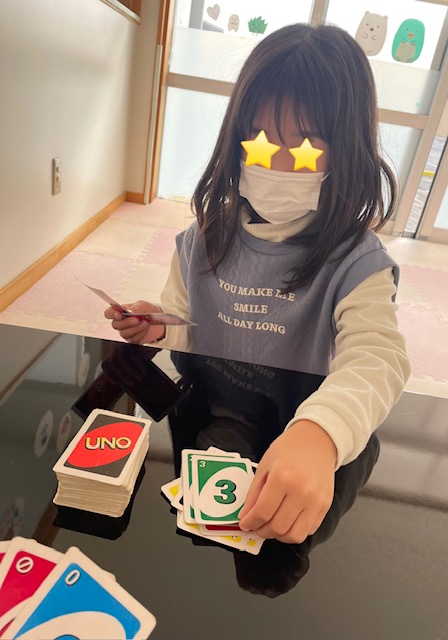先生と一緒にUNOで遊びましたが、ルールも良く知っていて